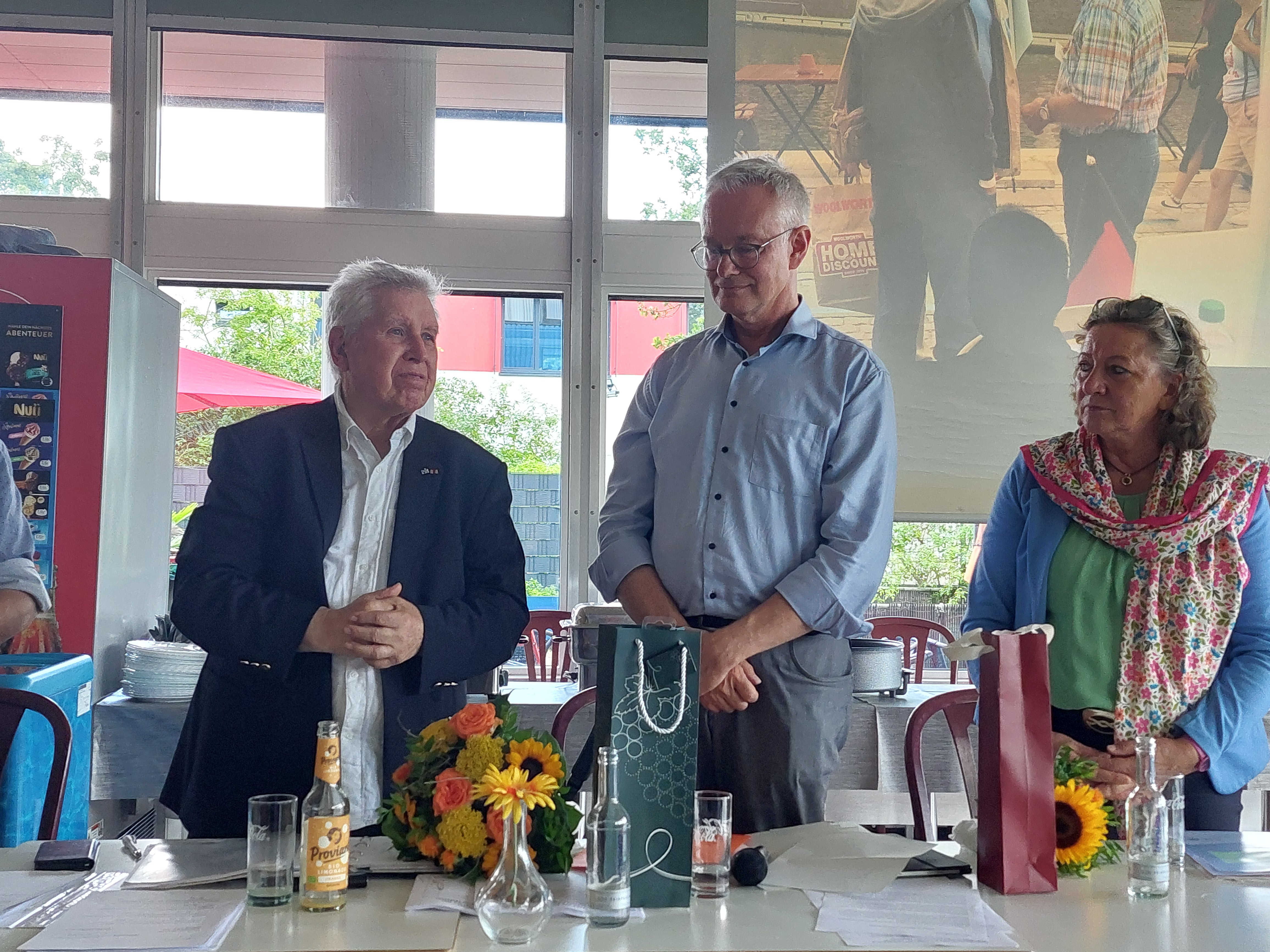 Aber auf jeden Fall wollen Dir die Mitglieder des Kreisvorstandes — auch im Namen aller Mitglieder hier — hier etwas überreichen.